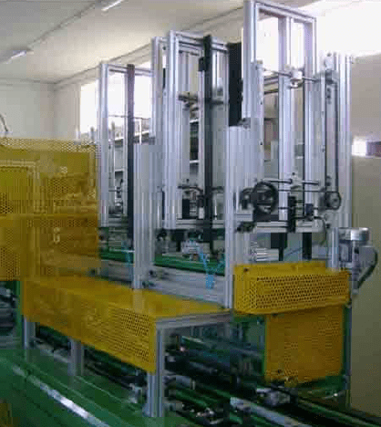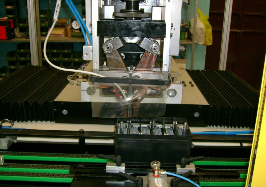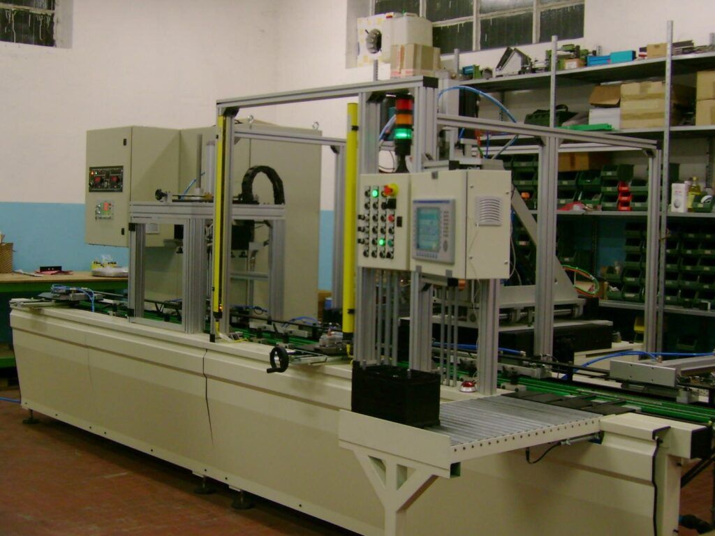 Battery short circuit check with axis control for positioning the test leads on the battery cells. The short circuit station control is managed automatically with P.L.C. Siemens.