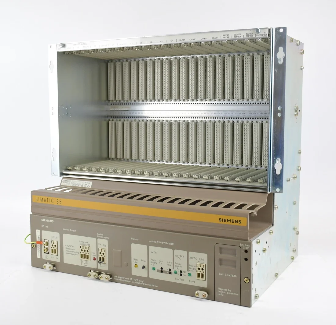 The Simatic S5 115 is the P.L.C. most used in the 90s for automation applications of machines and lines of medium complexity, with its functions of command, regulation, positioning and management of intelligent peripheral units for the execution of special tasks. Currently discontinued, it was replaced by the previous S7-300 and by the current S7-1200 and S7-1500.